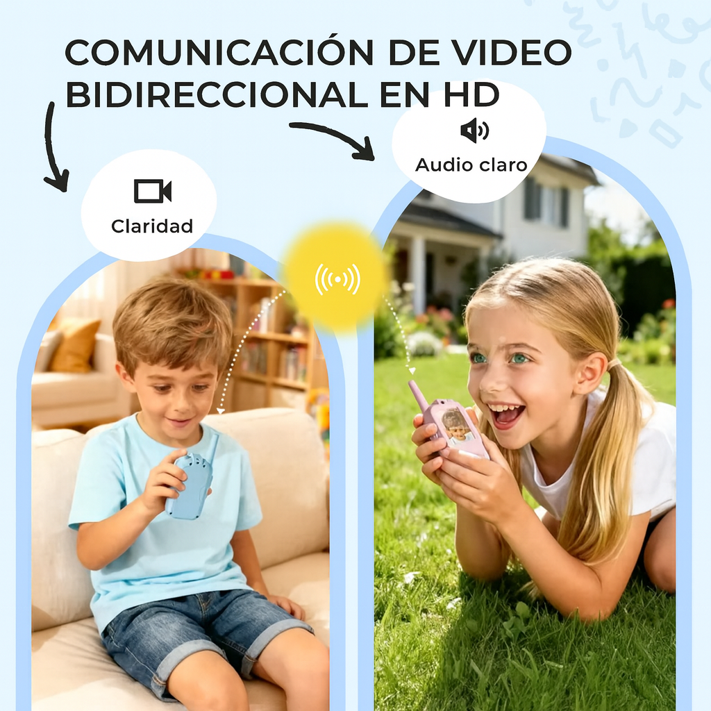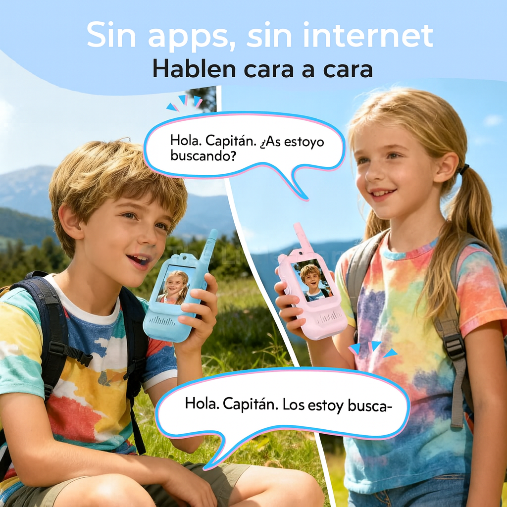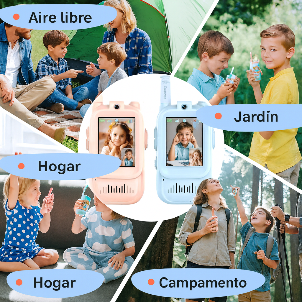 Los niños pueden charlar cara a cara, compartir risas y explorar con seguridad, ya sea en el patio, en otra habitación o de viaje familiar.